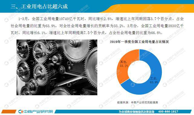 2019年1-3月,全社会用电增速同比提高,第二产业用电增速稳中有升;全国工业和制造业用电量同比增长,但增速均低于全社会用电量;四大高载能行业用电增速总体放缓,有色金属冶炼行业当月用电量有所降低;火电和风电发电量增速同比降低,水电和核电发电量增速同比提高;全国发电设备利用小时与上年基本持平,水电发电设备利用小时同比持续增加;全国跨区、跨省送电保持较快增长;全国基建新增装机容量同比持续减少,其中太阳能发电新增装机减少较多;电源和电网完成投资同比持续下降,但清洁能源投资占比有所提高。